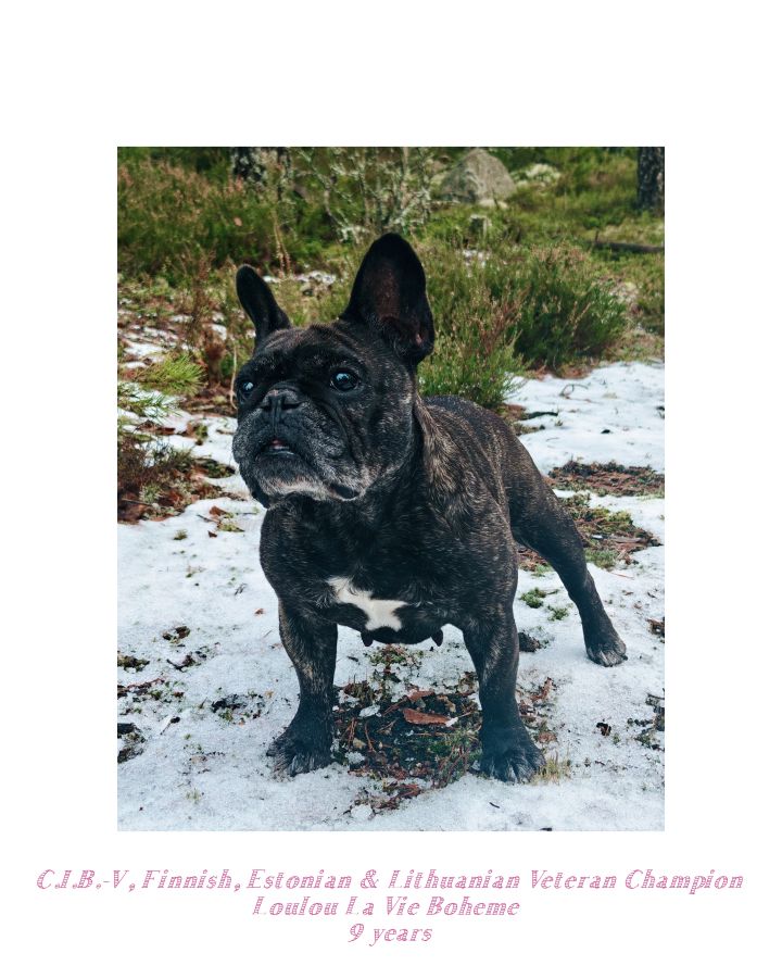 Iitun sijoitussopimus on purettu. Iitulla todettiin yllättävästi alkusyksystä lyhytkuonoisten rotujen hengitystestissä Helsingin eläinsairaalassa kohonneet maksa-arvot. Koira ei oireile mitenkään. Maksa ja muut sisäelimet on nyt ultrattu sekä Turussa että Helsingin eläinsairaalassa eikä mitään rakenteeseen tai perinnölliseen liittyvää syytä ole löytynyt. Toivon, että Iitu jatkaa elämäänsä reippaana ja iloisena itsenään eikä minkäänmoisia oireita koskaan tulisikaan! Kiitos Teija hyvästä yhteistyöstä!